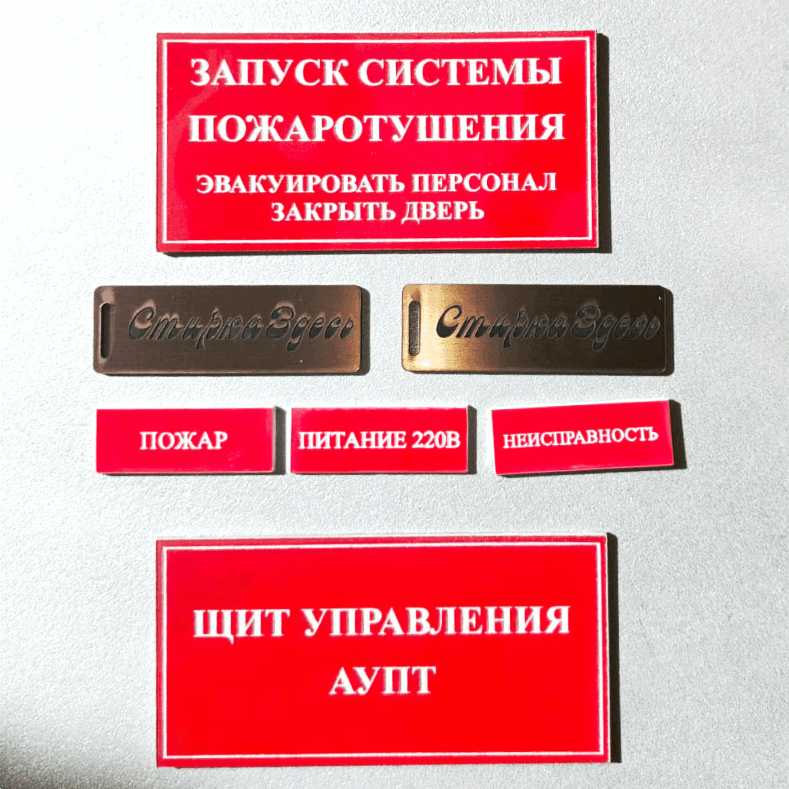 Производятся шильдики из разных материалов: металл, пластик, дерево, кожа. Наиболее распространены металлические варианты, поскольку они обладают прочностью, устойчивостью к износу и красивым внешним видом.